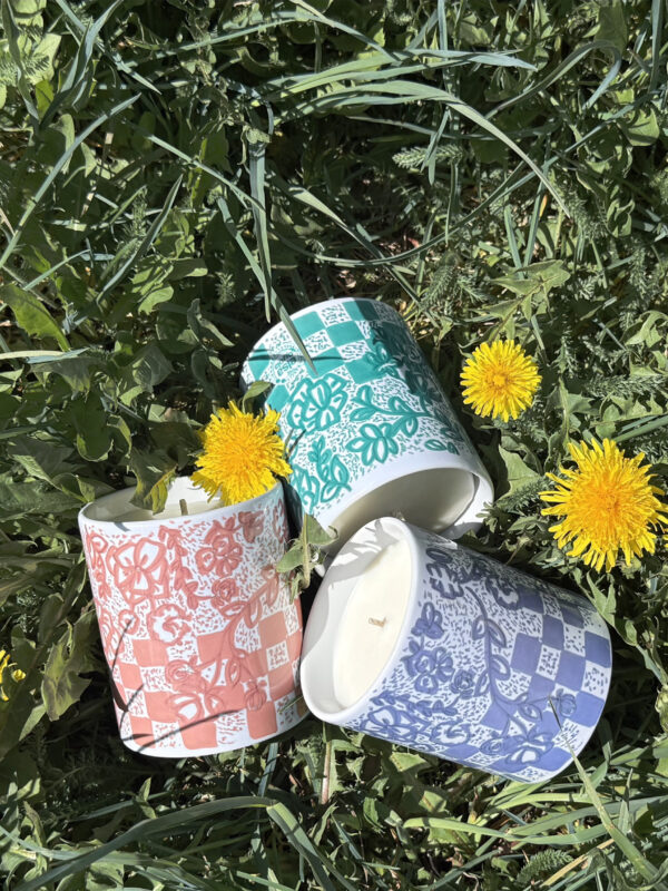 La bougie Vichy Parme est un hommage au motif vichy, revisité avec une touche florale, à la manière de la porcelaine d’époque. Son parfum Jardin de violettes est un éclat floral où se mêlent harmonieusement la rose, le jasmin et la violette. Un éveil énergique et raffiné.