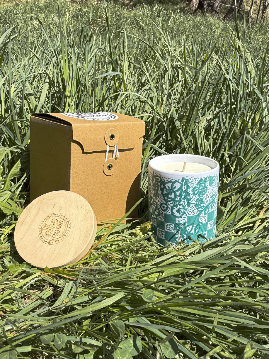 Chaque bougie est coulée à la main dans un pot en céramique illustré dans mon atelier par mes soin, et pensée pour être rechargée.
